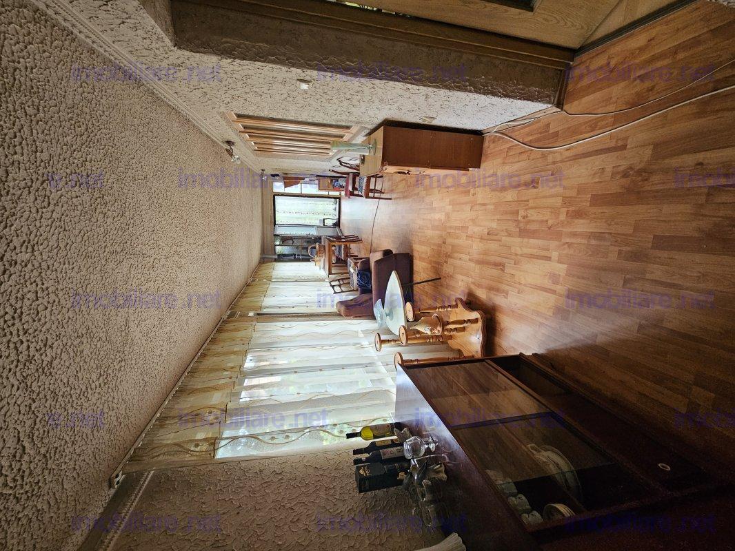 Parter 3 camere + Bucatarie + Baie. Etaj compartimentat/Nefinisat cu 3 camere + Bucatarie + Baie. Suprafata teren: 551 m.p. Suprafata construita: 288 m.p. din care 160 m.p. la sol (parter), 18 m.p. suprafata partiala (beci) si 110 m.p. etaj. Constructie realizata in anul 1977 din b.c.a. pe fundatie de beton cu centuri de jur-imprejur si placa turnata. Apa, Curent. Posibilitate de bransare la reteaua publica de canalizare.