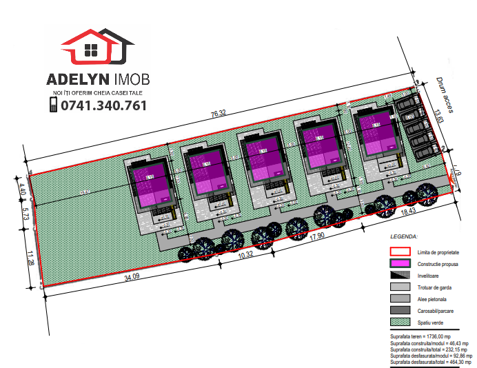 Nr.128 - Localitatea Dunavatu de Jos, Județul Tulcea - Exclusivitate - Agenția imobiliară ADELYN IMOB vă propune spre vânzare, în exclusivitate, teren intravilan, situat în localitatea Dunăvățu de Jos, comuna Murighiol, având suprafața totală de 1.736 mp, cu deschidere stradală de 25 ML. Toate utilitățile în fața terenului: apă, curent, canalizare; are certificat de urbanism pentru construirea a 5 căsuțe; ideal pentru destinație turistică; în apropiere de Complexul Sharaiman. Prețul propus spre vânzare este de 45 euro / mp.