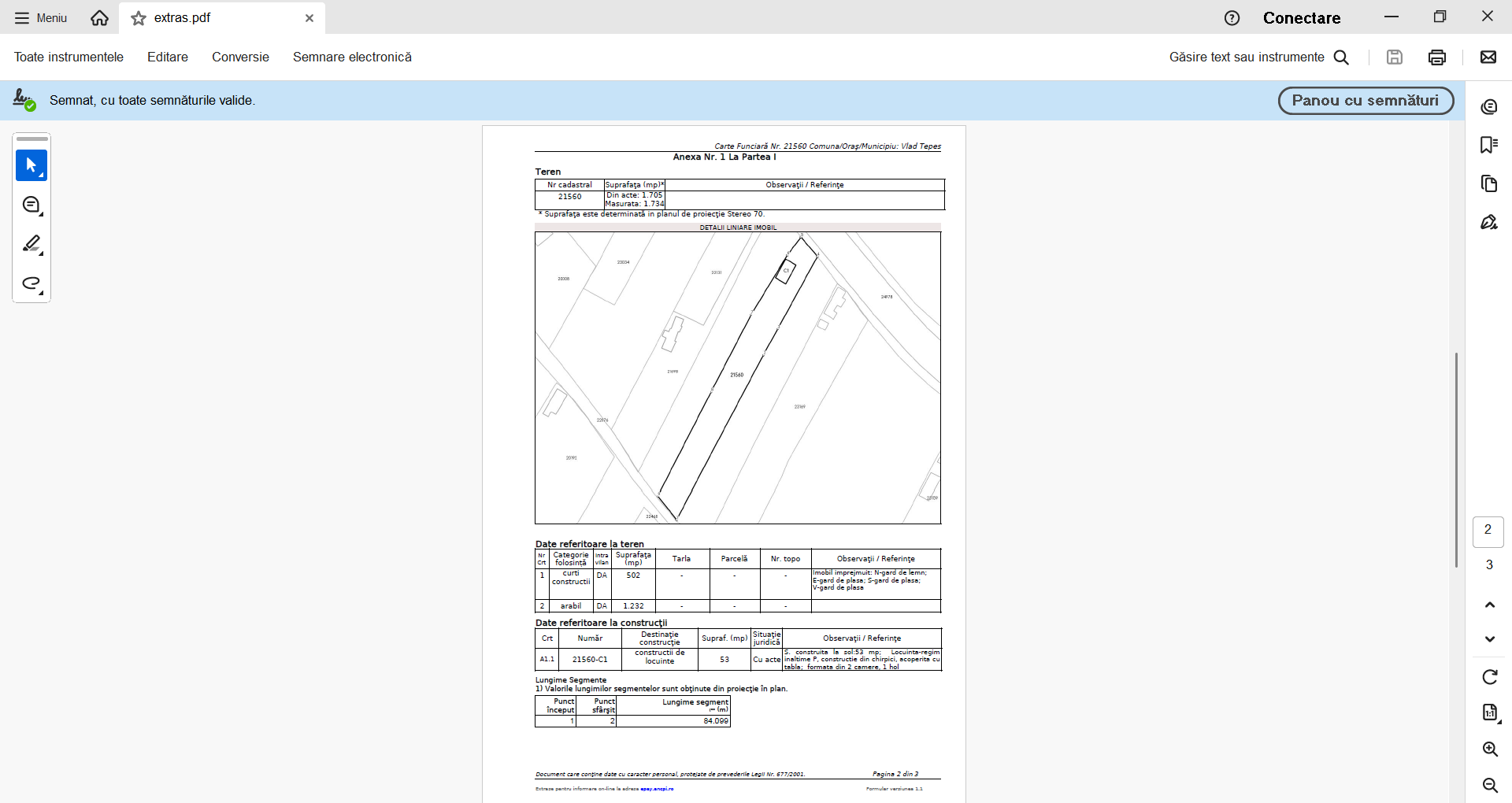 Proprietar vând imobil compus din teren în suprafață de 1734 mp (502 mp – curți construcții; 1232 mp – arabil) și o casă din chirpici cu acoperiș din tablă, schimbat în urmă cu 4 ani, anul construcției 1962, cu destinația de locuință, regim de înălțime P, suprafață construită de 53 mp, formată din 2 camere și dependințe. Terenul în suprafață de 1734 mp are deschidere la 2 străzi (11,54 m la Str. București) și (13,53 m la Str. Iancu de Hunedoara), existând astfel posibilitatea pentru cumpărător de a dezmembra terenul și a vinde un lot rezultat din dezmembrare în cazul în care dorește acest lucru. În apropierea terenului, la o distanță de aproximativ 300 mp se află un lac, ideal pentru pasionații de pescuit. Utilități: curent electric, puț, conductă de apă și canalizare în fața terenului (imobilul nu este branșat), cablu tv, internet, pistă de biciclete, trotuar, magazin și stație microbuz. O parte a terenului este betonat oferind spațiu necesar parcării unui autoturism. Regimul maxim de înălțime pentru această zonă este P+1E (conform certificatului de urbanism emis în 2024)